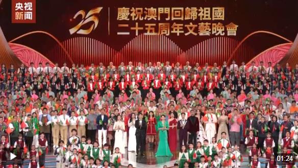 晚會最后,習(xí)近平同全場觀眾一起高唱《歌唱祖國》,祝愿偉大祖國繁榮富強,祝福澳門明天更加美好。習(xí)近平向全體演員和觀眾揮手致意,晚會氣氛被推向高潮,歌聲和掌聲匯成歡樂的海洋。