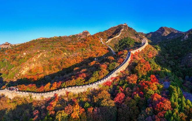 深秋的北京八達(dá)嶺長城層林盡染,風(fēng)景如畫。