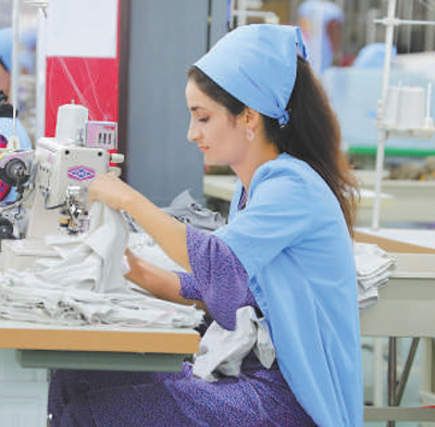 在中企投資的丹加拉農(nóng)業(yè)紡織產(chǎn)業(yè)園,當(dāng)?shù)毓と苏谶M(jìn)行成衣縫紉。本報(bào)記者 胡澤曦?cái)z