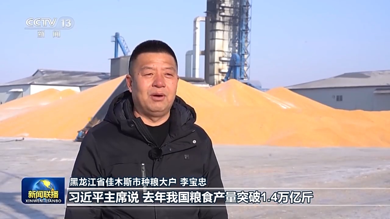 黑龍江省佳木斯市種糧大戶 李寶忠:習近平主席說,去年我國糧食產(chǎn)量突破1.4萬億斤,中國碗裝了更多中國糧。聽到這話我心里特別自豪。今年春耕之前,我們要更新購置大型高端智能的玉米收割機,我要和鄉(xiāng)親們一起加油干,在農(nóng)業(yè)現(xiàn)代化的道路上扎實走好每一步,用我們的雙手把中國飯碗端得更牢。