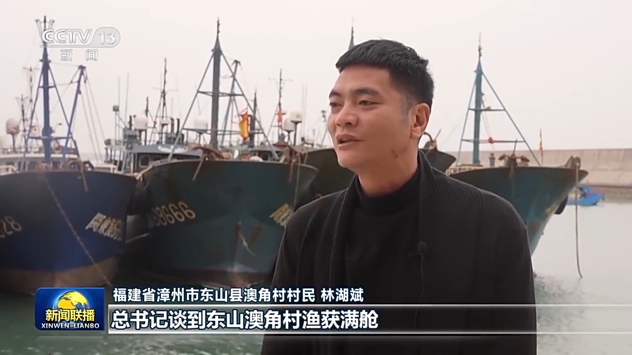 福建省漳州市東山縣澳角村村民 林湖斌:在新年賀詞中,總書記談到東山澳角村漁獲滿艙,讓我非常感動,也干勁十足?,F(xiàn)在是年節(jié)期間,正是海產(chǎn)品的銷售旺季,訂單也是越來越多。我們要擼起袖子加油干,讓我們海洋漁業(yè)發(fā)展得更好,把我們澳角村建設得更美好。
