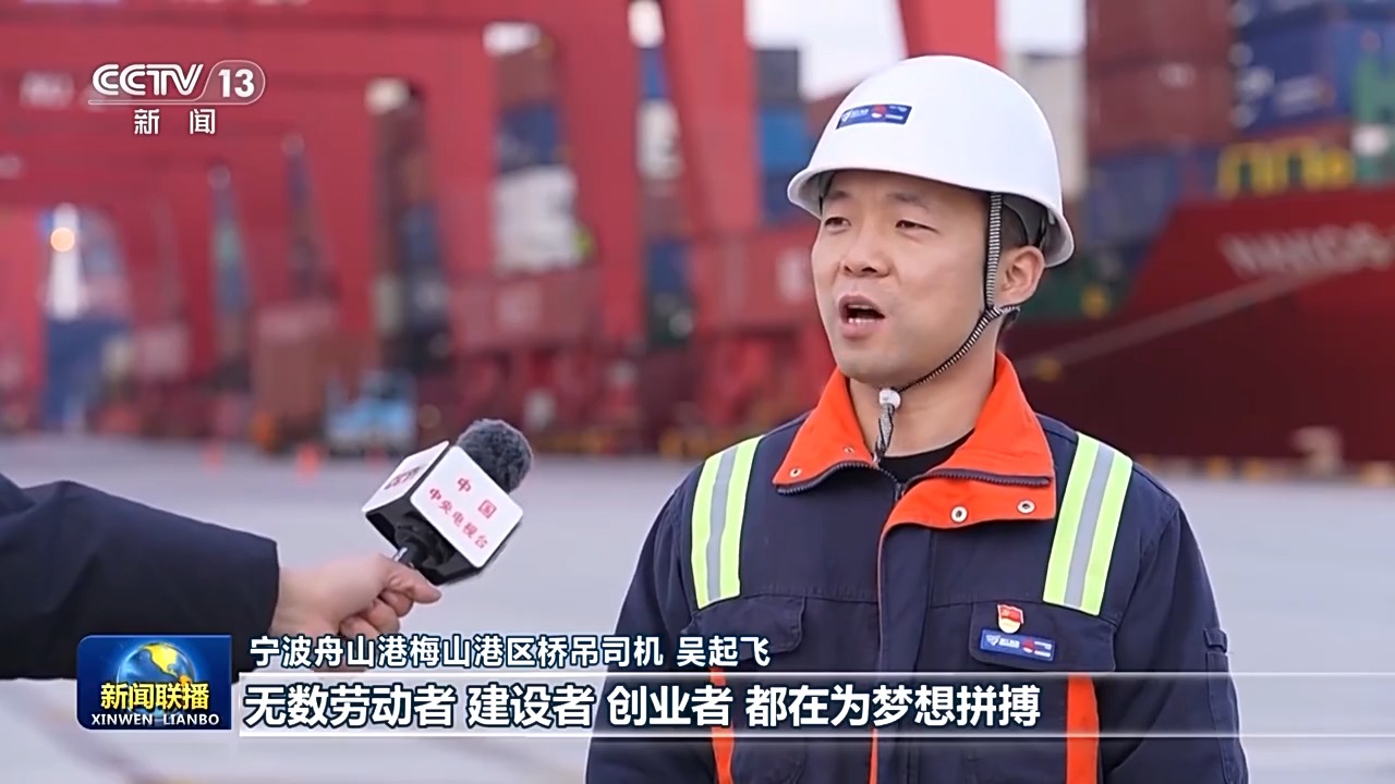 寧波舟山港梅山港區(qū)橋吊司機 吳起飛:習近平總書記在2025年新年賀詞里說,無數(shù)勞動者、建設者、創(chuàng)業(yè)者都在為夢想拼搏。2024年,我們實現(xiàn)了寧波舟山港梅山港區(qū)年集裝箱吞吐量超一千萬的目標。2025年,和團隊的小伙伴們一起,把智慧港口建設好,為海港的發(fā)展貢獻力量。