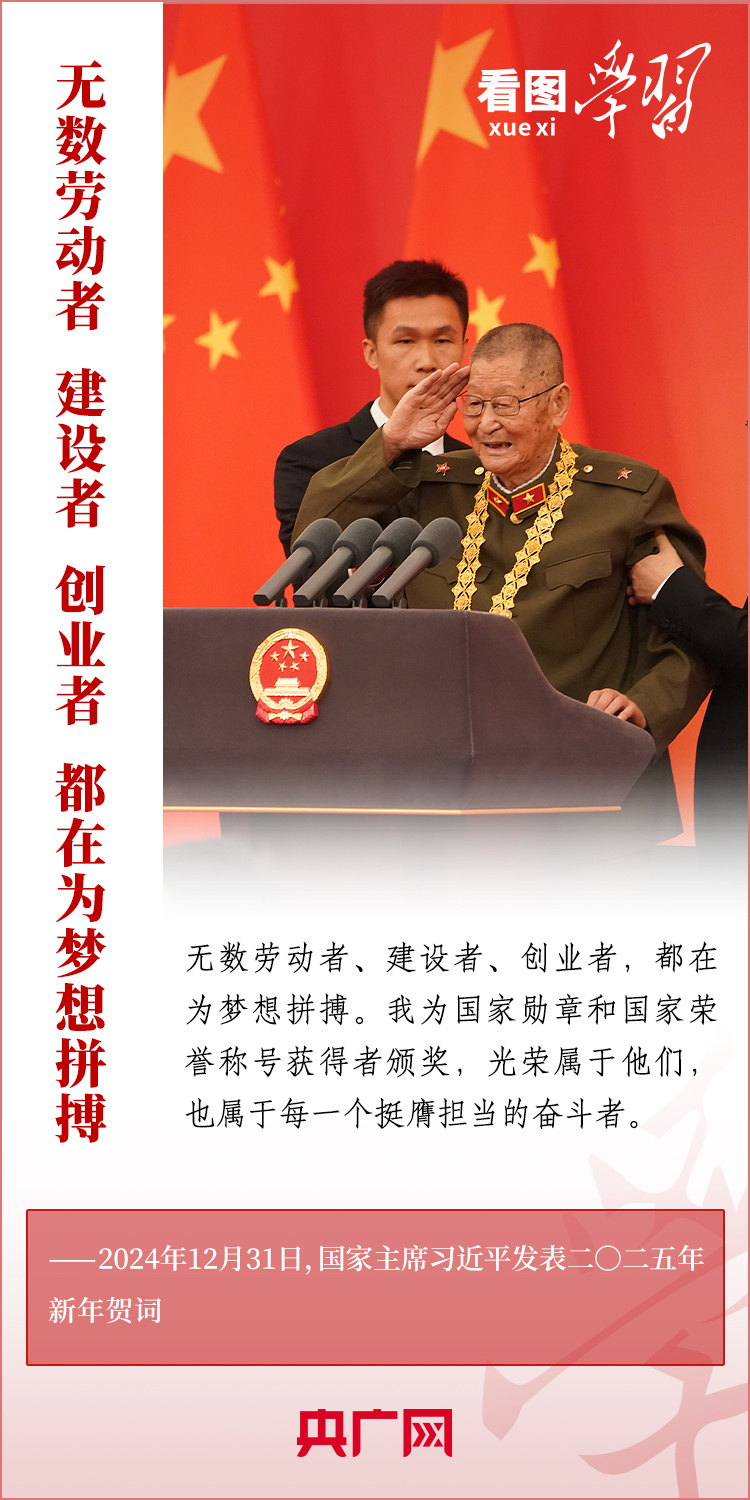 “夢雖遙,追則能達;愿雖艱,持則可圓?!毙履昵跋?,習近平主席發(fā)表二〇二五年新年賀詞。在溫暖有力的講述中,習主席深情回望過去一年中國不平凡的奮斗歷程、精彩瞬間,感慨大家一道經(jīng)歷的風雨彩虹、難忘時刻,贊美無數(shù)為夢想拼搏的勞動者、建設者、創(chuàng)業(yè)者。習主席說,中國式現(xiàn)代化的新征程上,每一個人都是主角,每一份付出都彌足珍貴,每一束光芒都熠熠生輝。讓我們充滿信心,在新的一年接續(xù)奮斗!