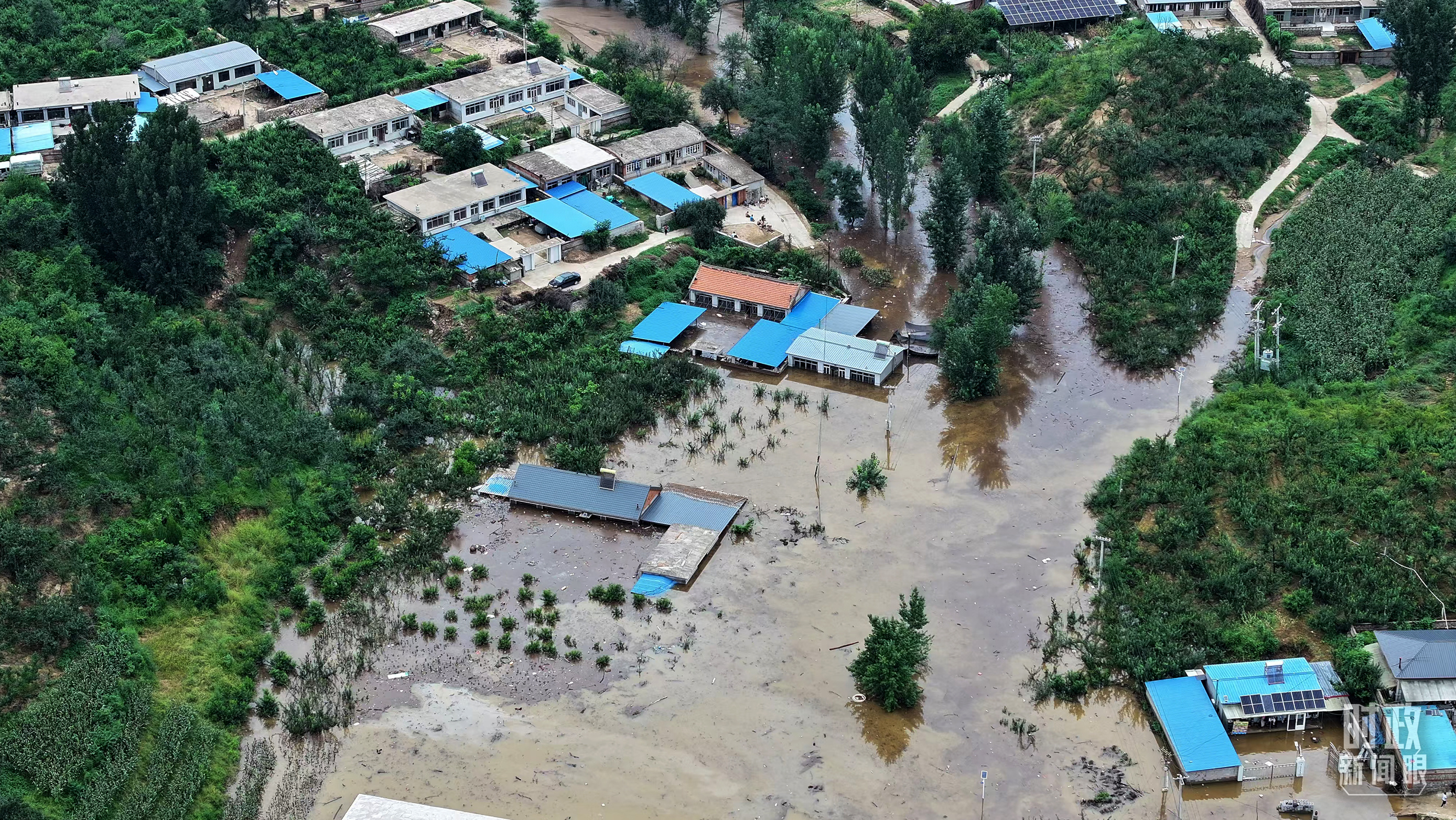 被洪水淹沒(méi)的祝家溝村。