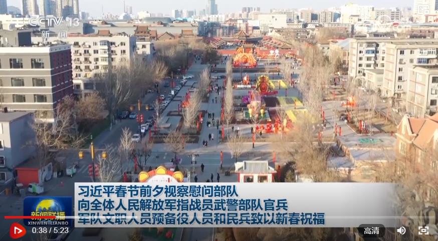 在中華民族傳統(tǒng)節(jié)日春節(jié)來(lái)臨之際,中共中央總書記、國(guó)家主席、中央軍委主席習(xí)近平24日到北部戰(zhàn)區(qū)機(jī)關(guān)視察慰問,通過(guò)視頻看望基層官兵,檢查部隊(duì)?wèi)?zhàn)備值班和執(zhí)行任務(wù)情況,代表黨中央和中央軍委,向全體人民解放軍指戰(zhàn)員、武警部隊(duì)官兵、軍隊(duì)文職人員、預(yù)備役人員和民兵致以誠(chéng)摯問候和新春祝福。