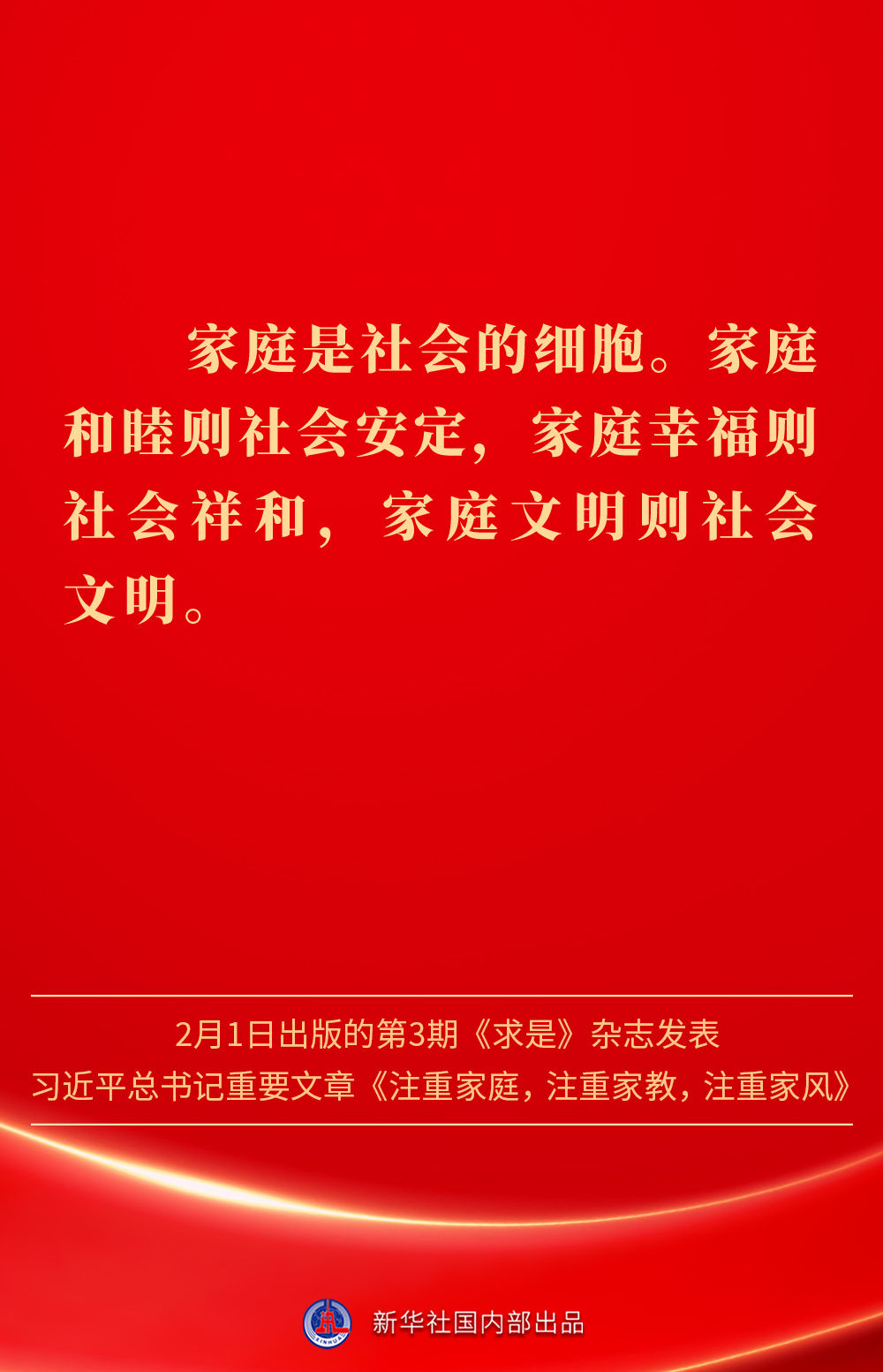 萬家團圓共慶新春佳節(jié)之際,2月1日出版的第3期《求是》雜志發(fā)表習近平總書記重要文章《注重家庭,注重家教,注重家風》。為什么要注重家庭、家教、家風?如何做好家庭文明建設?習近平總書記這樣闡述——