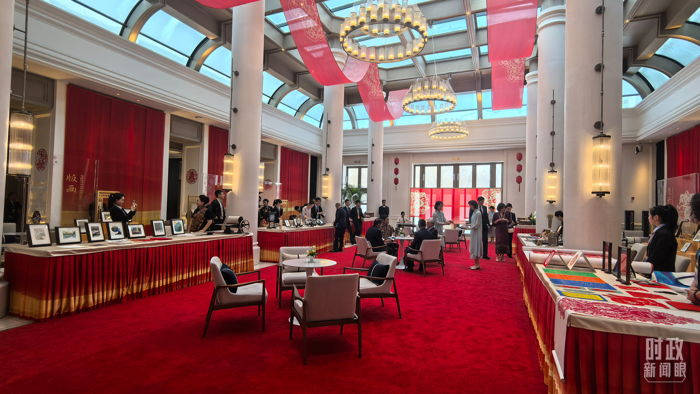 歡迎宴會開始前的黑龍江非物質文化遺產展示。(總臺央視記者史偉、央廣記者馬喆拍攝)