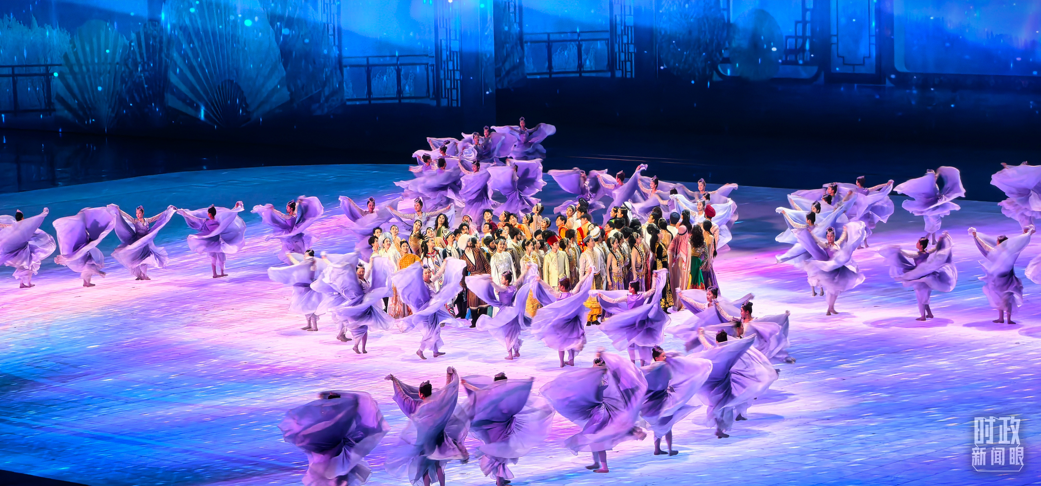 文藝表演分為上篇《熾熱冰雪》、中篇《燃情時速》、下篇《山高水長》,通過《長歌頌冰河》《榮光耀未來》《馳騁天地間》《璀璨嘉年華》《攜手情久長》《萬里共和鳴》等節(jié)目,展現化“極寒”為“極美”“極燃”“極暖”的意蘊。