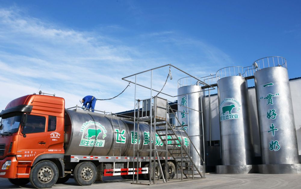 在黑龍江飛鶴乳業(yè)股份有限公司專(zhuān)屬甘南瑞信達(dá)原生態(tài)牧場(chǎng),工作人員在檢查一輛剛裝完鮮奶的全封閉低溫安全運(yùn)輸車(chē)(2018年10月30日攝)。長(zhǎng)期以來(lái),一批民營(yíng)企業(yè)推動(dòng)打造農(nóng)業(yè)全產(chǎn)業(yè)鏈,帶動(dòng)農(nóng)民就業(yè)增收。通過(guò)技術(shù)創(chuàng)新和品牌建設(shè),提升產(chǎn)品質(zhì)量,為鄉(xiāng)村振興注入強(qiáng)勁動(dòng)能。