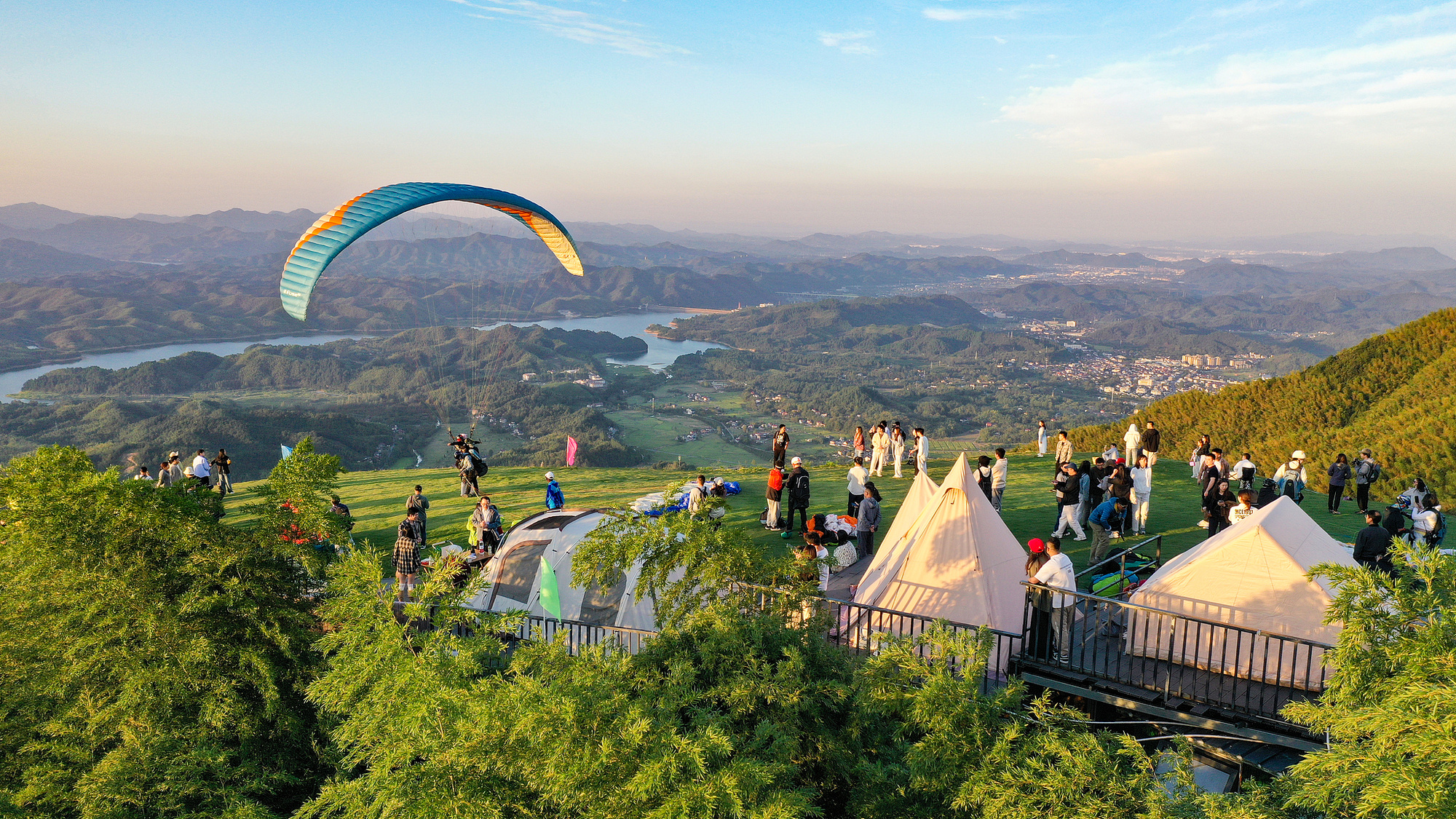 浙江安吉:游客乘坐滑翔傘領(lǐng)略自然風(fēng)光