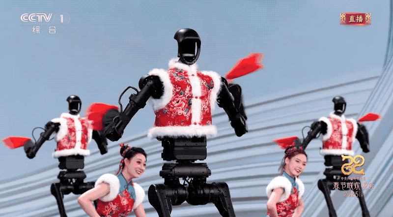 在2025年總臺央視春晚上,宇樹科技的16個人形機器人與16名舞蹈演員協(xié)同共舞。