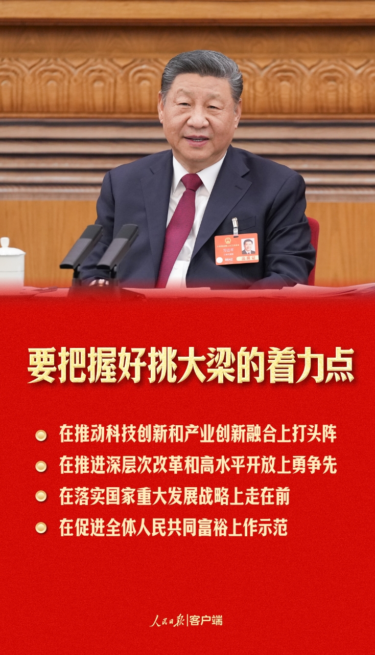 2023年1月,習(xí)近平總書記在江蘇當(dāng)選第十四屆全國人大代表。連續(xù)三年到江蘇代表團參加審議,總書記都提到了“挑大梁”這個關(guān)鍵詞。