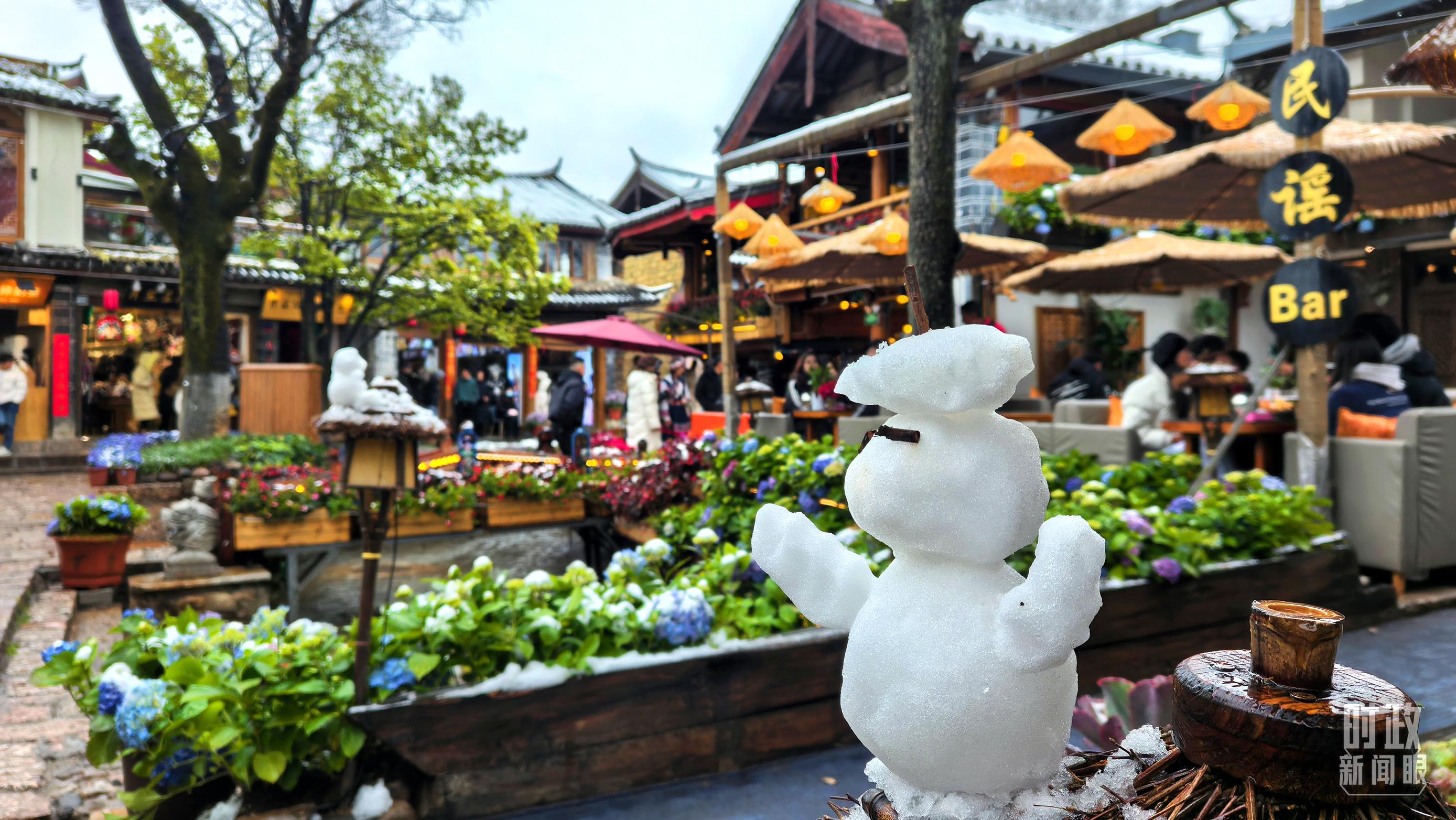 一場(chǎng)瑞雪后的麗江古城。(總臺(tái)央視記者程鋮拍攝)