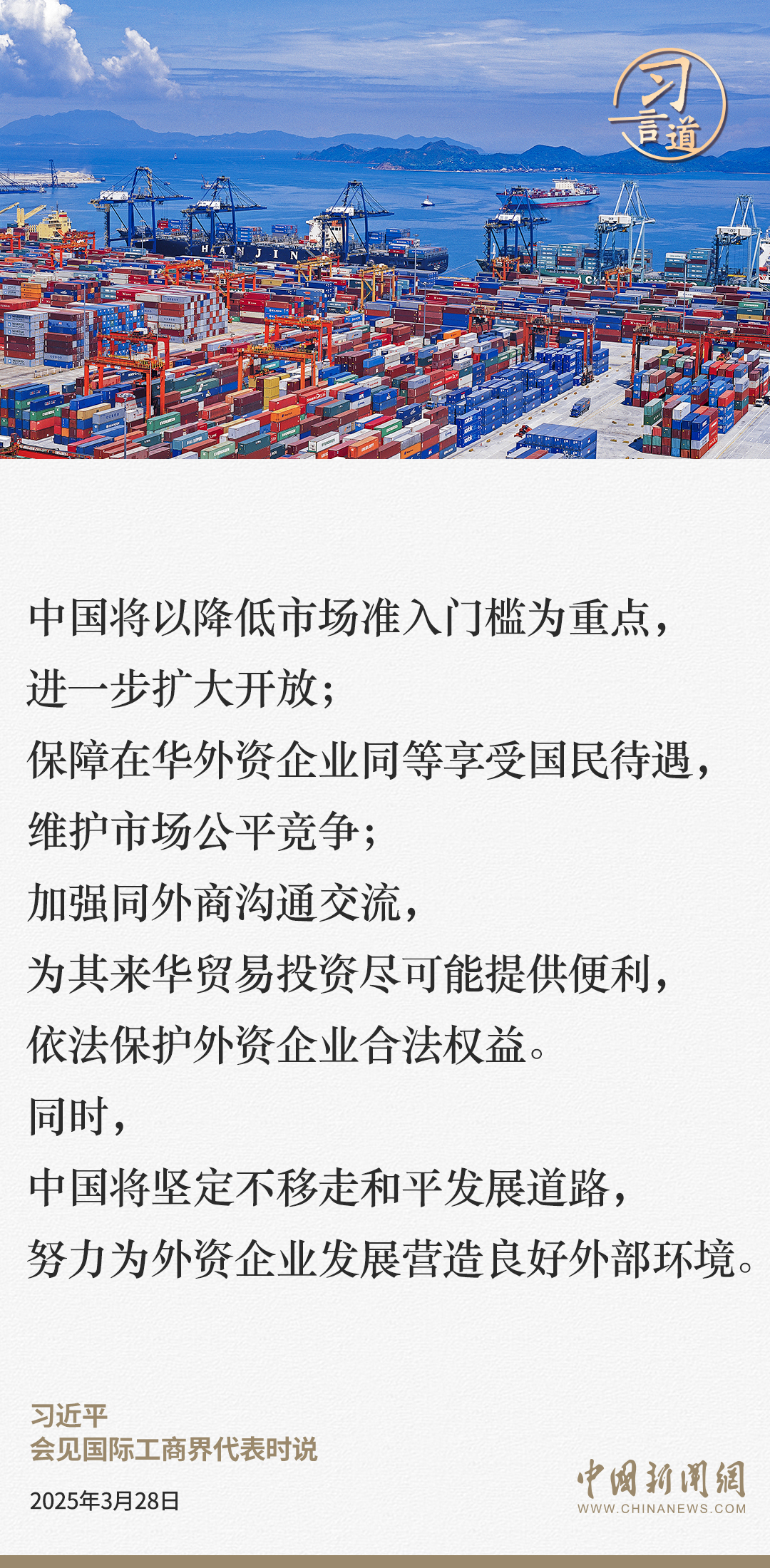 3月28日,國家主席習(xí)近平在北京人民大會堂會見國際工商界代表。習(xí)近平主席指出——
