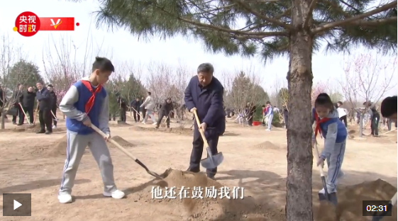 植樹(shù)期間,習(xí)近平詢問(wèn)孩子們的學(xué)習(xí)生活和勞動(dòng)鍛煉情況,并同在場(chǎng)的干部群眾親切交談。