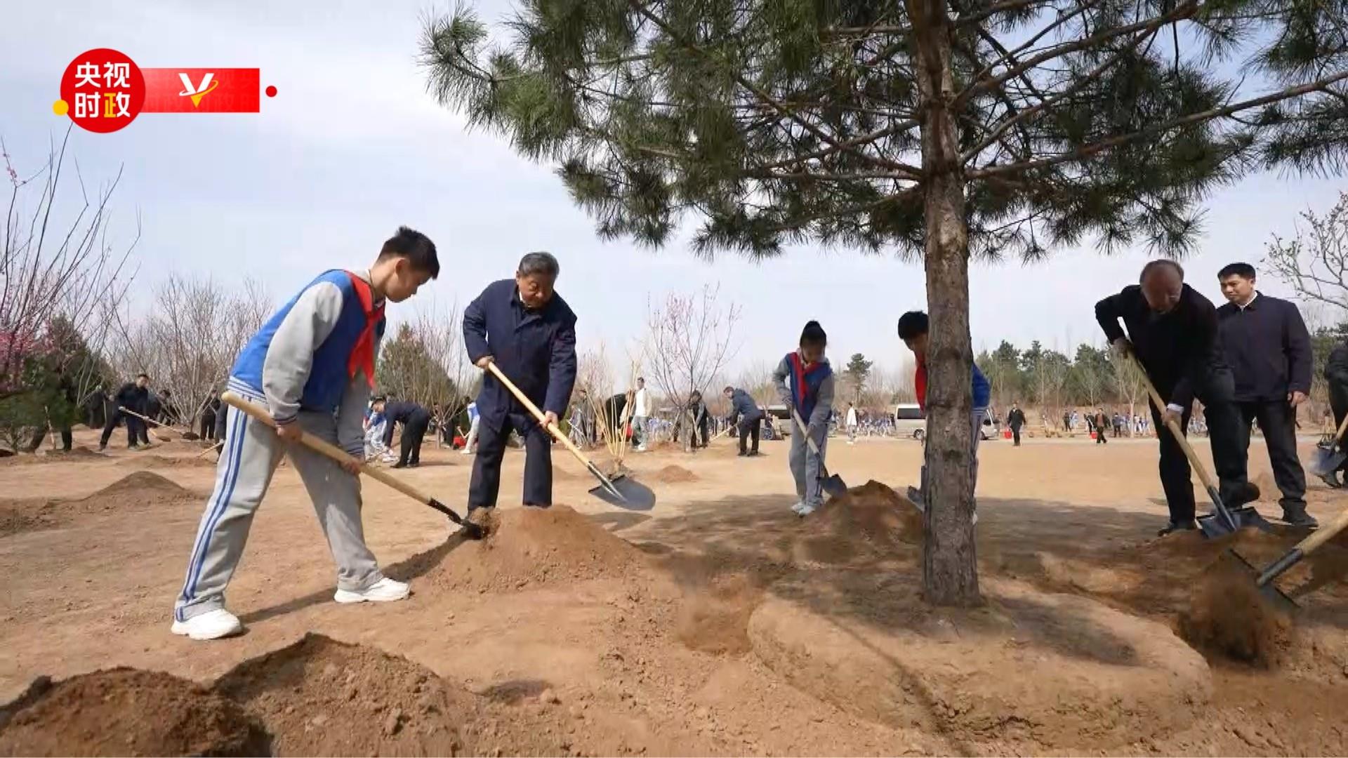 鏟土造坑、培土圍堰、提水澆灌……習(xí)近平接連種下油松、金枝槐、美人梅、車(chē)梁木、杜仲、元寶楓等多棵樹(shù)苗。