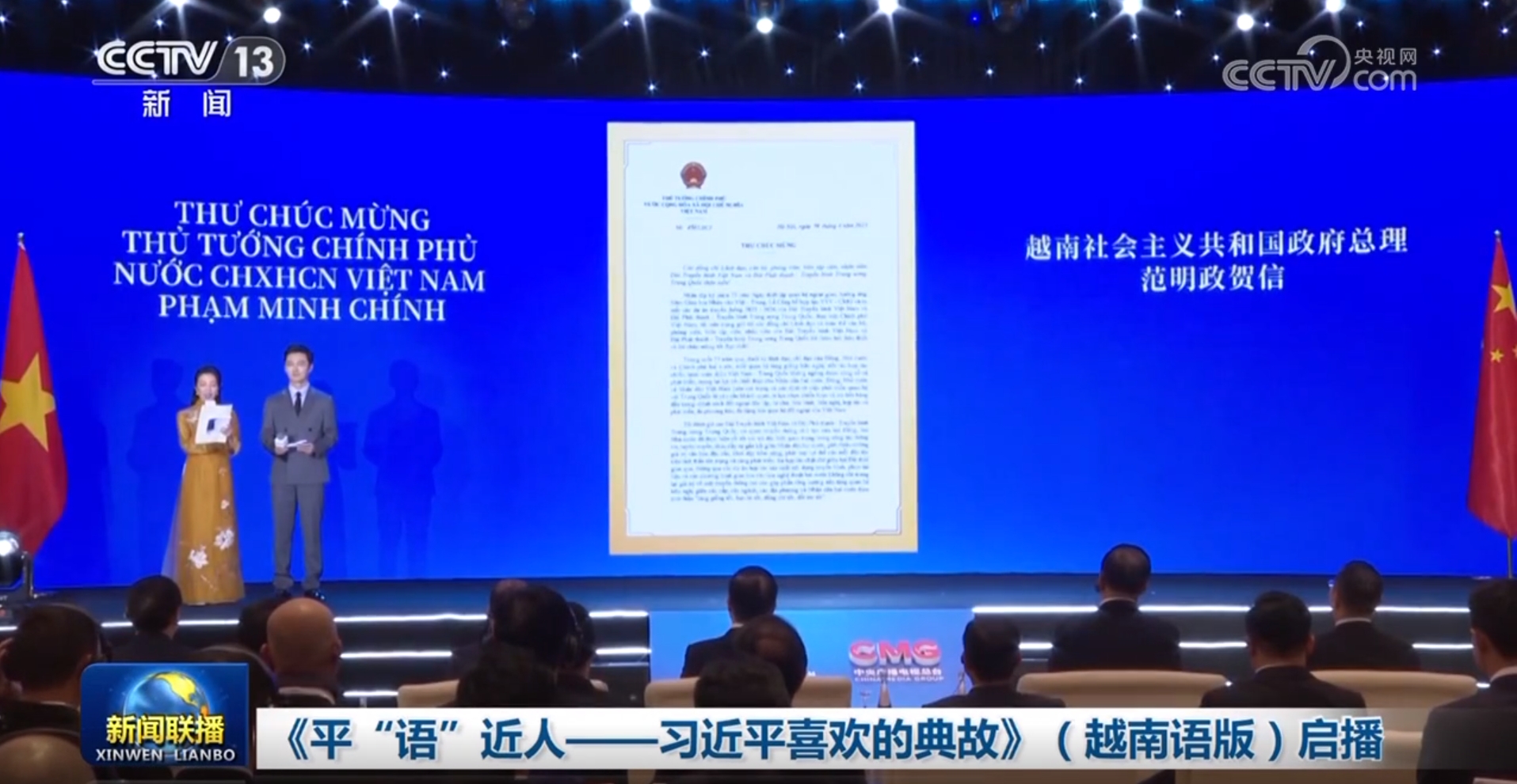 在中共中央總書記、國家主席習(xí)近平對(duì)越南進(jìn)行國事訪問之際,4月14日,由中國中央廣播電視總臺(tái)制作的《平“語”近人——習(xí)近平喜歡的典故》(越南語版)在越南啟播。慶祝中越建交75周年人文交流活動(dòng)同日在河內(nèi)舉行。越南總理范明政致賀信,對(duì)節(jié)目播出和活動(dòng)成功舉辦表示祝賀。