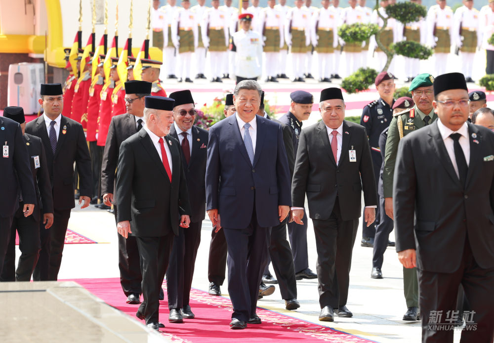4月16日上午,馬來西亞最高元首易卜拉欣在馬來西亞國家王宮同中國國家主席習(xí)近平舉行會見。