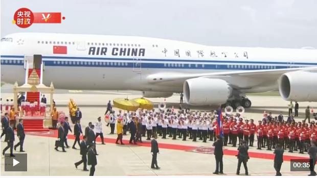 當(dāng)?shù)貢r(shí)間4月17日上午,國家主席習(xí)近平在柬埔寨國王西哈莫尼的陪同下檢閱柬埔寨儀仗隊(duì)。
