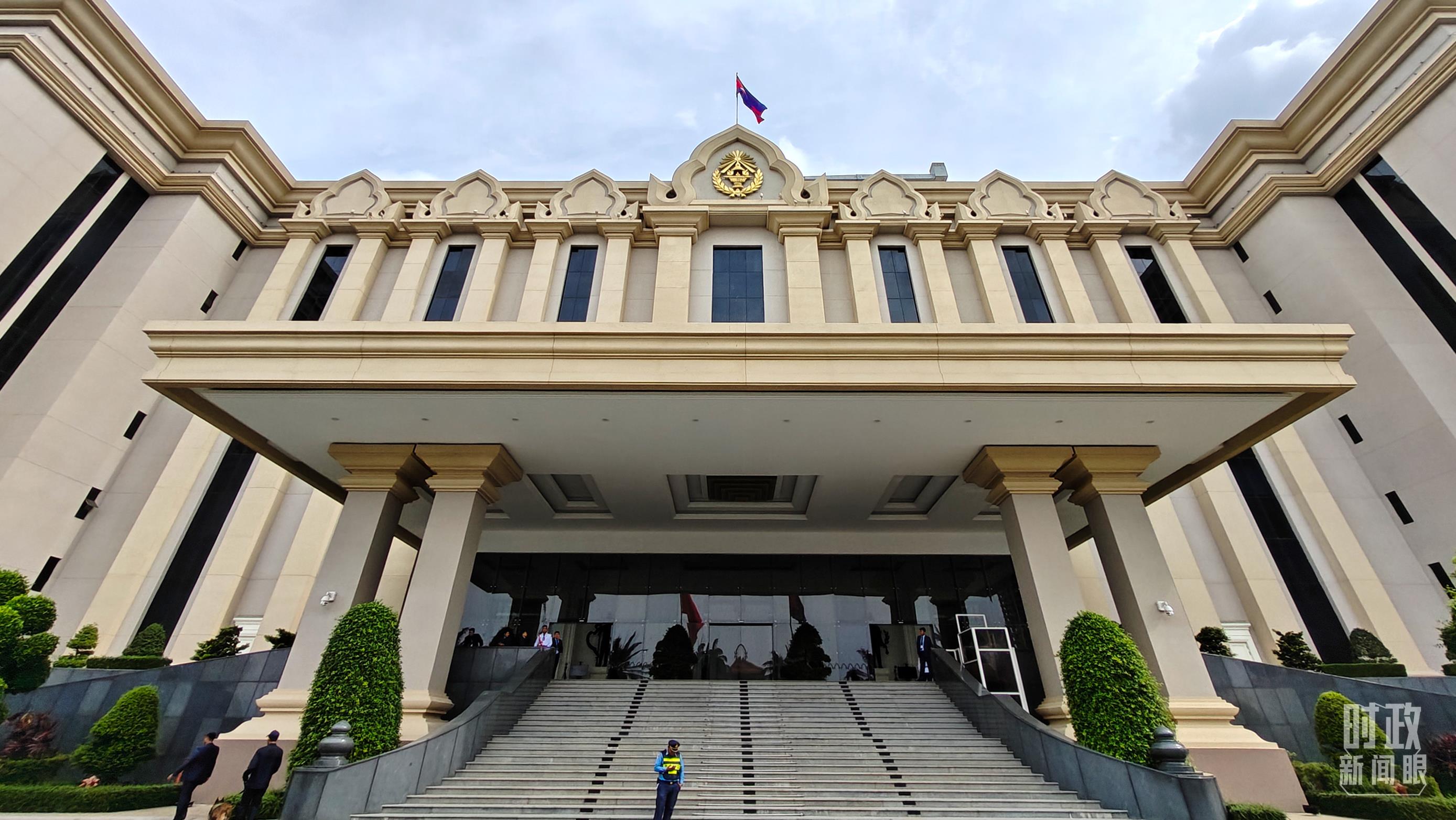 金邊和平大廈,習(xí)主席同洪森、洪瑪奈的會(huì)見(jiàn)會(huì)談在這里舉行。(總臺(tái)央視記者范一鳴拍攝)