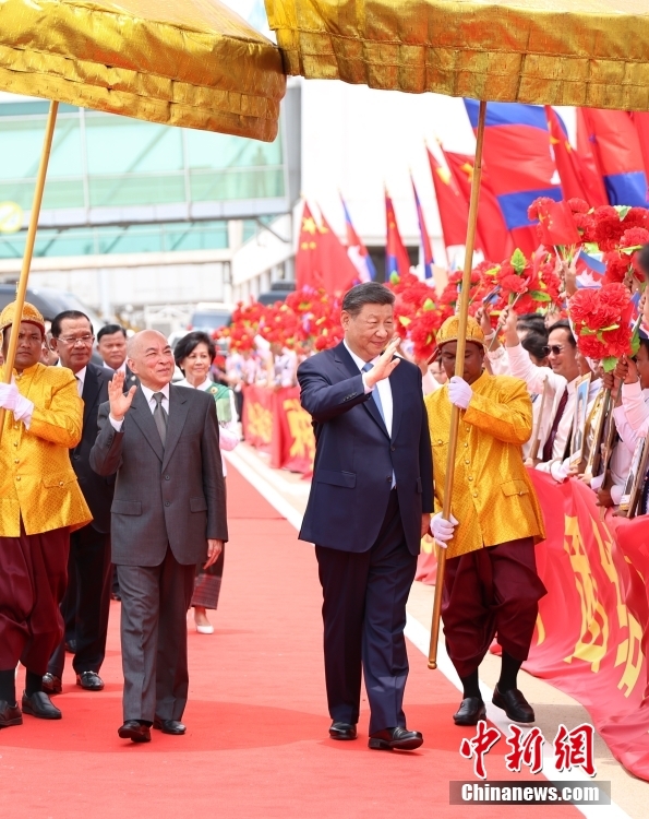 這是柬埔寨國王西哈莫尼登基以來,首次在機場為來訪的外國元首舉行隆重歡迎儀式,特別的安排展現(xiàn)出柬方對此訪的高規(guī)格禮遇。