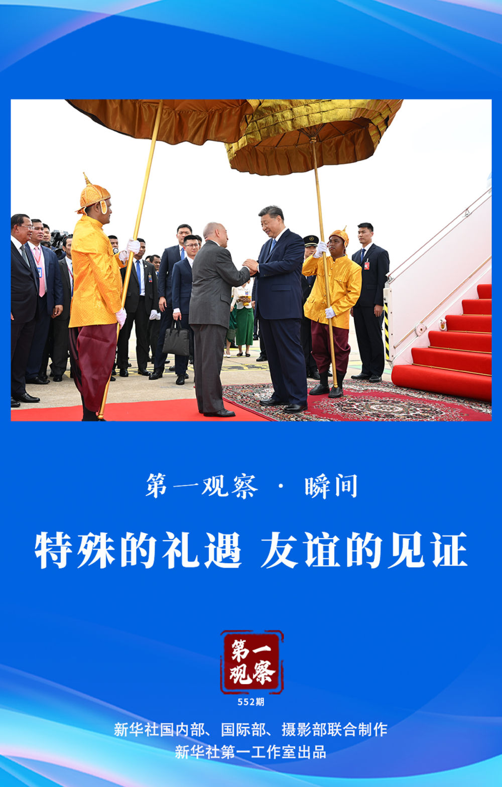 午時的陽光恰似人民的熱情如火,蜿蜒的隊伍正如兩國情誼綿長。此時的金邊,化作一片熱烈歡慶的海洋。