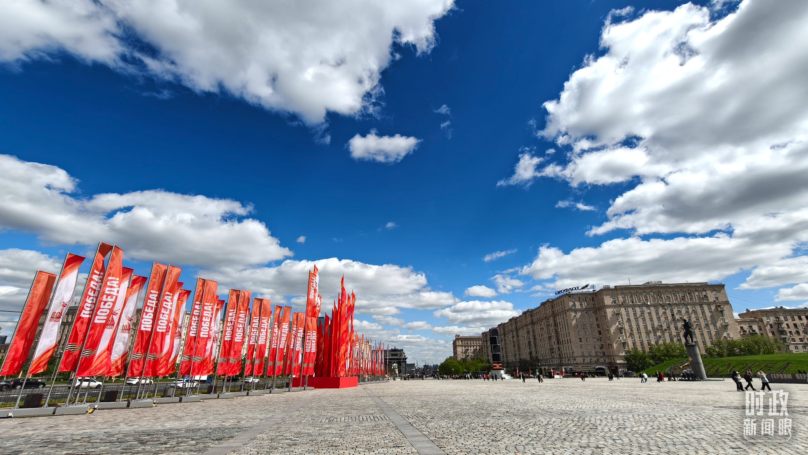 莫斯科街頭的勝利日旗幟。(總臺(tái)央視記者楊波拍攝)