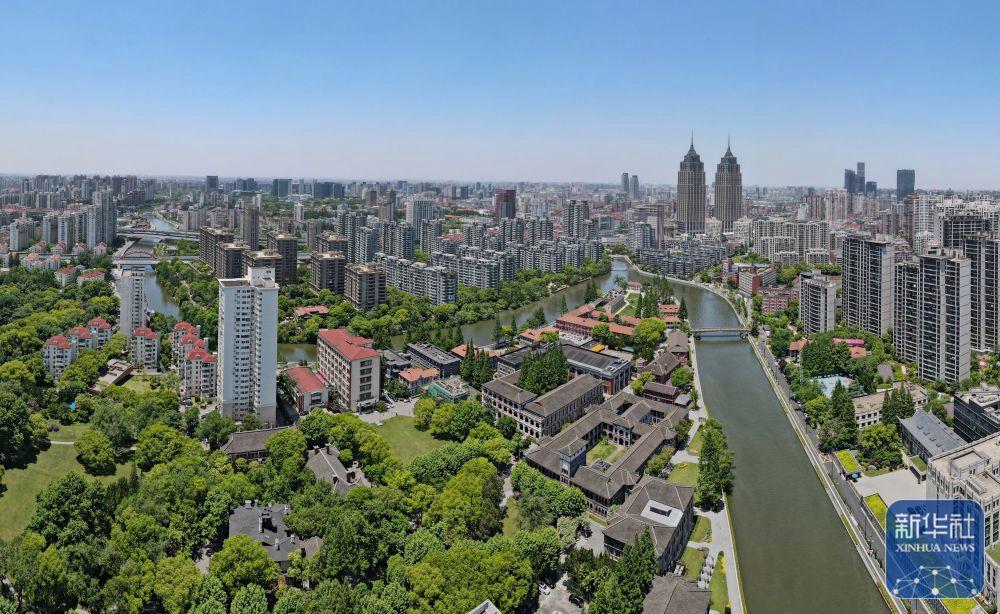 蘇州河華東政法大學(xué)段的歷史建筑群(無人機照片,2023年3月3日攝)。