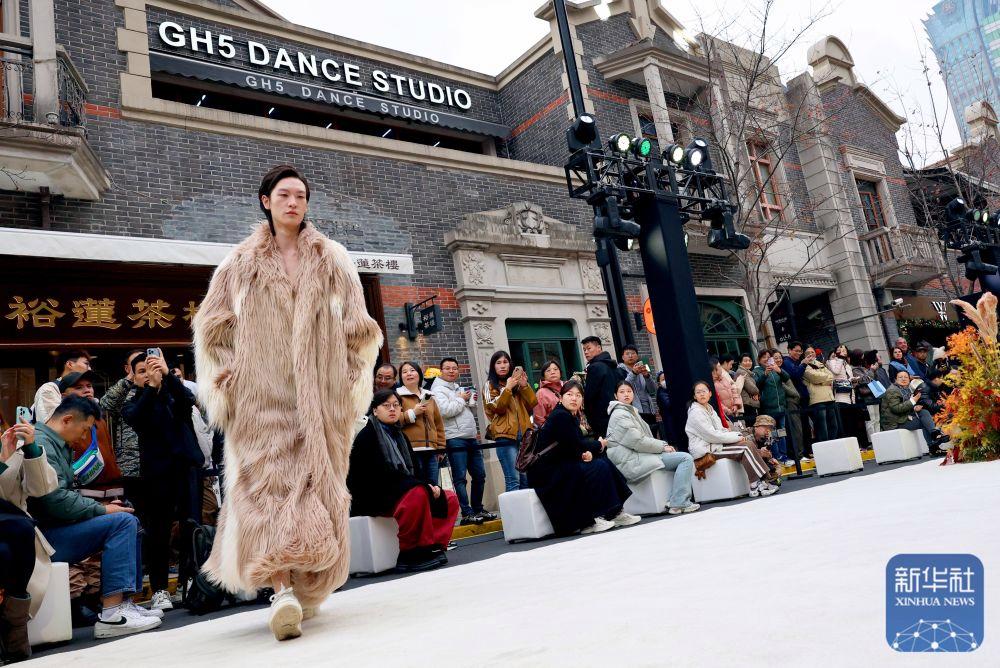2024年12月7日,模特在“?!づ蓮垐@時尚文化周”中國青年設(shè)計師時裝秀上展示設(shè)計師服裝作品。時裝秀以張園建筑主色調(diào)與設(shè)計線條為靈感,百年石庫門建筑群落為背景,將茂名北路作為T臺秀場,獨具上海特色。