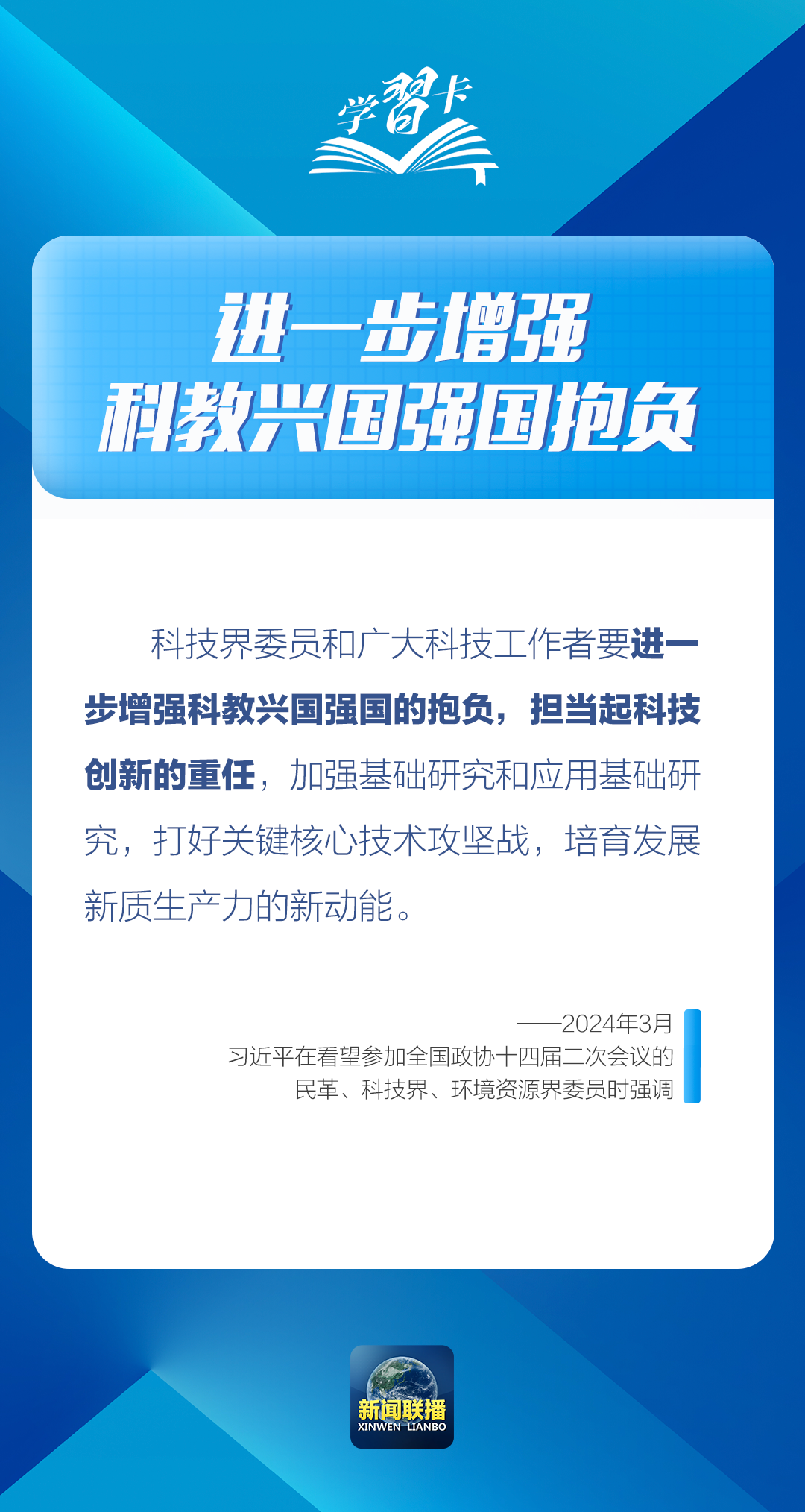 科技興則民族興,科技強(qiáng)則國家強(qiáng)。實(shí)現(xiàn)高水平科技自立自強(qiáng)、建設(shè)科技強(qiáng)國,廣大科技工作者重任在肩、使命光榮。