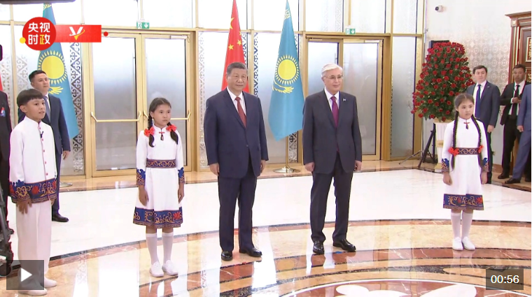 習(xí)近平抵達(dá)阿斯塔納納扎爾巴耶夫國際機場時,托卡耶夫總統(tǒng)率總統(tǒng)辦公廳主任達(dá)杰拜、副總理兼外長努爾特列烏、總統(tǒng)外事顧問卡濟(jì)漢、阿斯塔納市長卡瑟姆別克等高級官員熱情迎接。