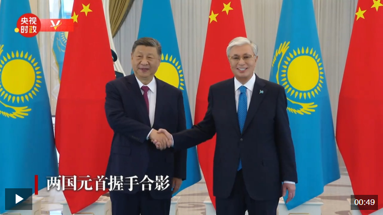 當(dāng)?shù)貢r間6月16日下午,國家主席習(xí)近平乘車抵達阿斯塔納總統(tǒng)府,托卡耶夫總統(tǒng)在下車處迎接。會談前,兩國元首握手合影。