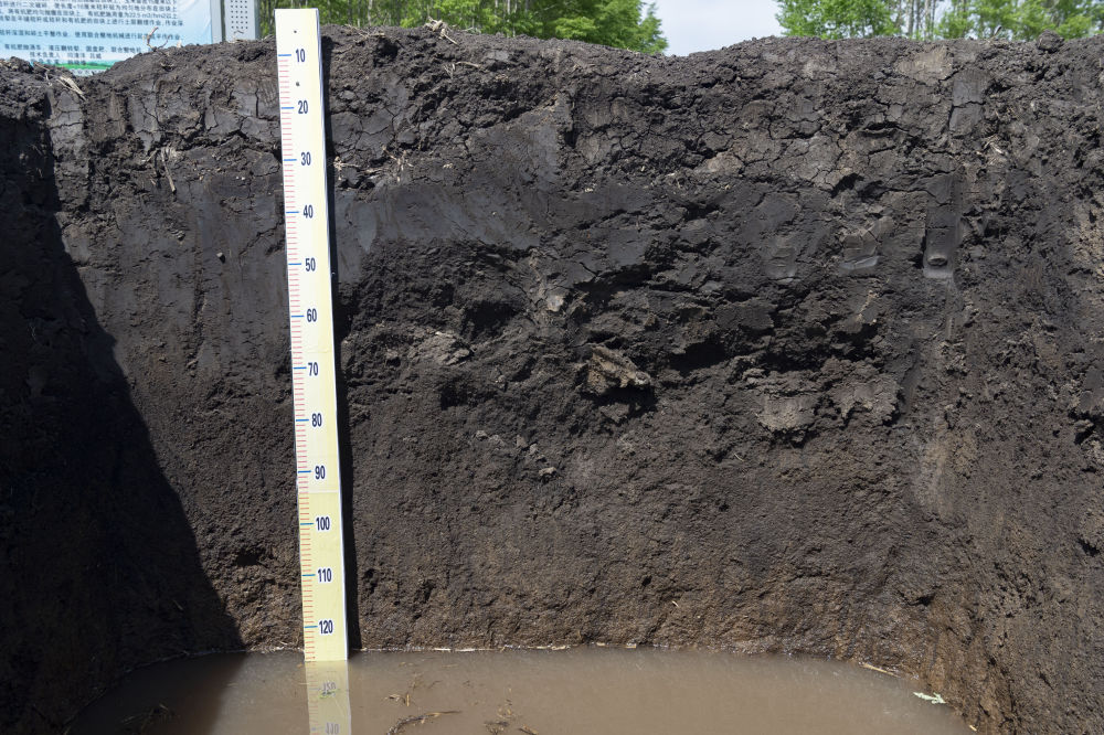 黑龍江省海倫市前進(jìn)鎮(zhèn)自新村農(nóng)業(yè)科技示范基地內(nèi)一處用來(lái)觀(guān)測(cè)黑土層厚度的土壤剖面(2022年5月23日攝)。