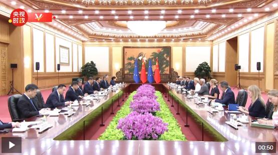 7月24日上午,國家主席習(xí)近平在北京人民大會堂會見來華舉行第二十五次中國-歐盟領(lǐng)導(dǎo)人會晤的歐洲理事會主席科斯塔和歐盟委員會主席馮德萊恩。