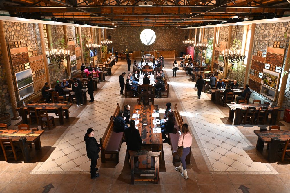 2020年底,源石成功創(chuàng)建國(guó)家4A級(jí)旅游景區(qū),開(kāi)設(shè)預(yù)約游覽機(jī)制,組織專業(yè)導(dǎo)游隊(duì)伍,開(kāi)發(fā)多種葡萄酒文旅產(chǎn)品。五年來(lái),源石年均接待游客超過(guò)40萬(wàn)人次,葡萄酒銷售額從2000多萬(wàn)元增長(zhǎng)到5000多萬(wàn)元,其中旅游帶動(dòng)的銷售額占比超過(guò)50%。
