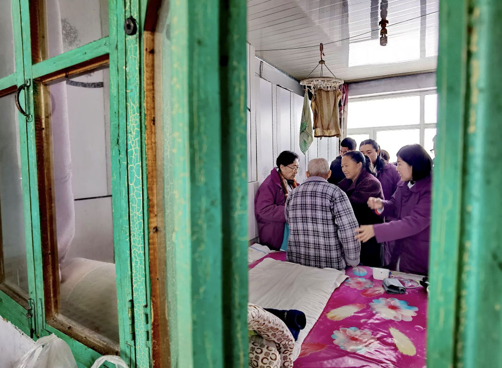 2024年11月26日,87歲的遼寧金秋醫(yī)院“菊香愛心團(tuán)隊(duì)”領(lǐng)隊(duì)張菊香(左一)冒雪到行動(dòng)不便的患者家中診治。多年來,數(shù)百名熱心公益事業(yè)的“菊香愛心團(tuán)隊(duì)”醫(yī)務(wù)工作者在遼寧的鄉(xiāng)村、街道社區(qū)為群眾提供優(yōu)質(zhì)醫(yī)療服務(wù),先后開展大型義診活動(dòng)近百次,診治群眾超過6萬人次;舉辦健康科普講座超過60場,受益群眾超過4萬人;培訓(xùn)鄉(xiāng)村基層醫(yī)務(wù)人員上千人。