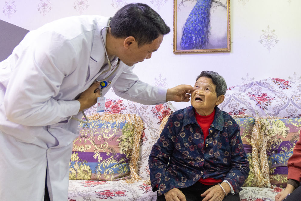2024年10月10日,一名家庭醫(yī)生在重慶高新區(qū)白市驛鎮(zhèn)驛站社區(qū)上門為老人做健康檢查。近年來,重慶高新區(qū)積極探索養(yǎng)老服務(wù)創(chuàng)新形式,通過“智慧養(yǎng)老云平臺”監(jiān)測健康數(shù)據(jù),為獨(dú)居、空巢、失能等困難老年人提供生活照料、精神慰藉、文娛教育、健康管理等個(gè)性化服務(wù),讓轄區(qū)老年人享受到優(yōu)質(zhì)、便捷的居家養(yǎng)老服務(wù)。