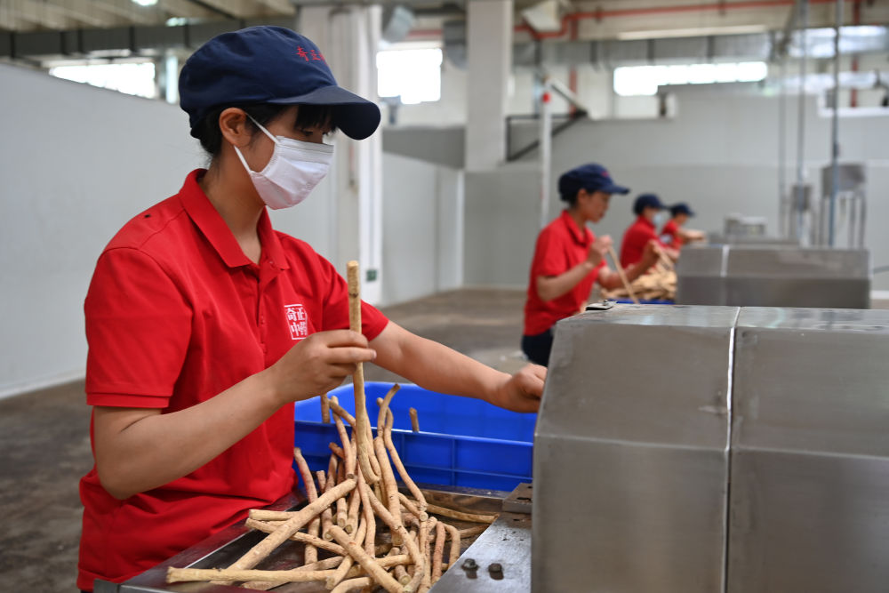 2024年7月23日,工人在甘肅定西隴西縣文峰鎮(zhèn)一家藥材企業(yè)加工中藥材切片。隴西中藥材種植歷史悠久,盛產(chǎn)300余種中藥材,是全國“道地藥材”的重要產(chǎn)區(qū)之一。近年來,當(dāng)?shù)赝ㄟ^推行產(chǎn)地種植標(biāo)準(zhǔn)化、藥材加工精深化、原藥倉儲規(guī)?;⑺幉慕灰资袌龌?、質(zhì)量監(jiān)測常態(tài)化、產(chǎn)業(yè)發(fā)展品牌化等改革創(chuàng)新舉措,推動(dòng)中醫(yī)藥產(chǎn)業(yè)高質(zhì)量發(fā)展。