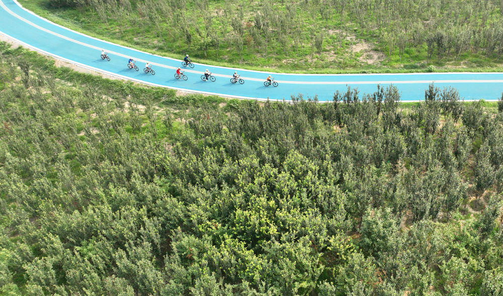 2024年7月10日,自行車愛好者在石家莊市環(huán)城綠道北線騎行休閑。近年來,石家莊依托滹沱河、環(huán)城水系等優(yōu)質(zhì)景觀資源,通過架設(shè)橋梁、提升景觀和完善綠地等措施,打造景美、智游、暢達(dá)的城市綠道健身體系,加強(qiáng)環(huán)城綠道與中心城區(qū)串聯(lián)銜接,方便市民無障礙步行或騎行,提升群眾生活幸福感和獲得感。
