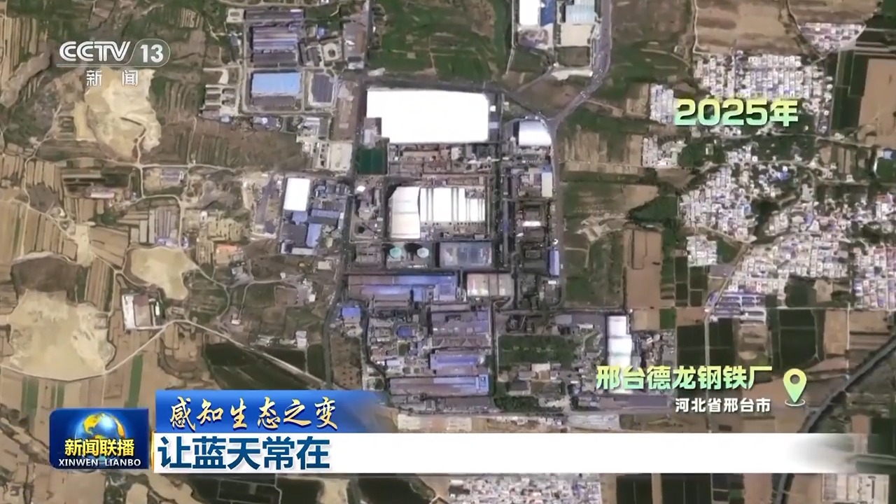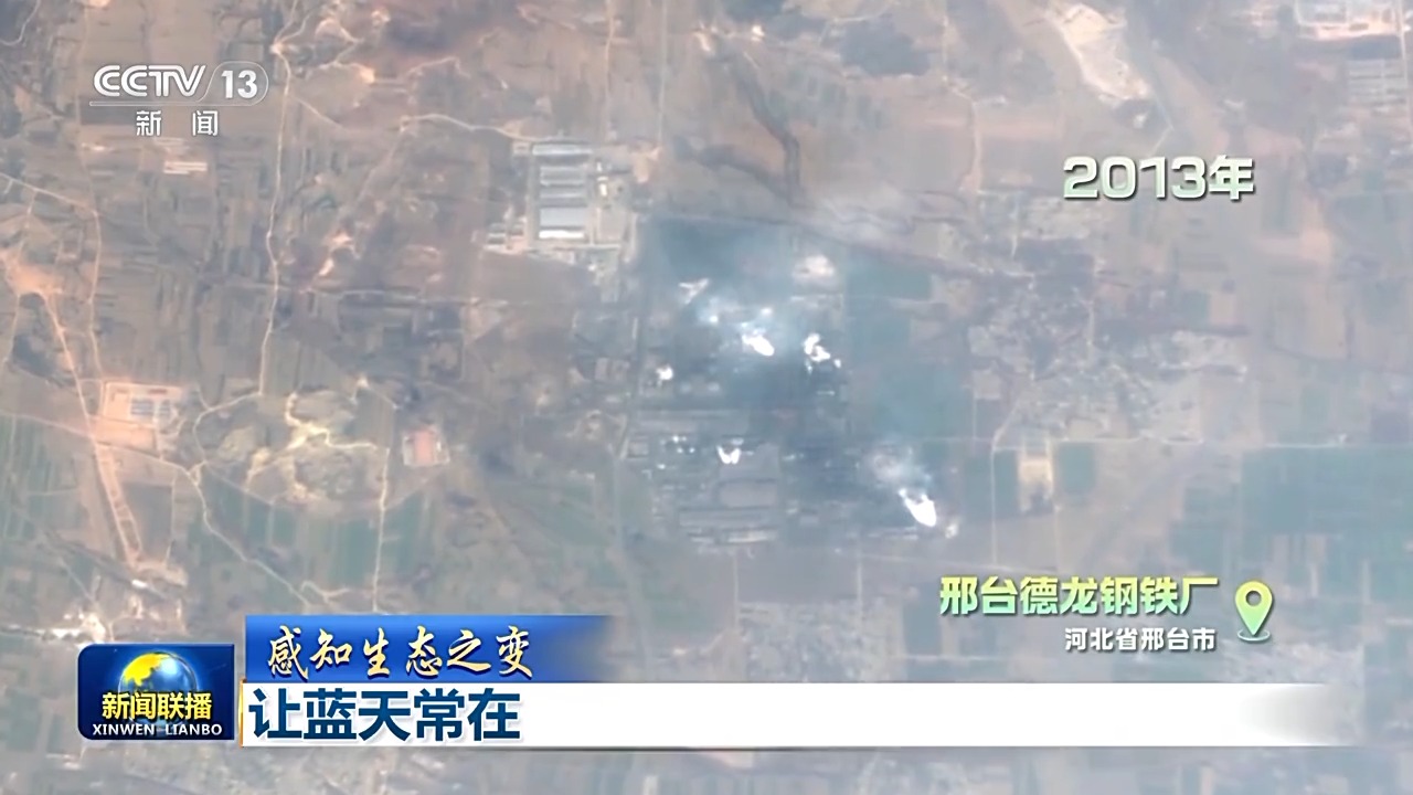 這是當(dāng)時(shí),環(huán)境監(jiān)測(cè)衛(wèi)星拍到的德龍鋼鐵廠,霧霾最嚴(yán)重的時(shí)候幾乎看不出廠區(qū)輪廓。而如今,卻是清晰可見,綠意蔥蔥。