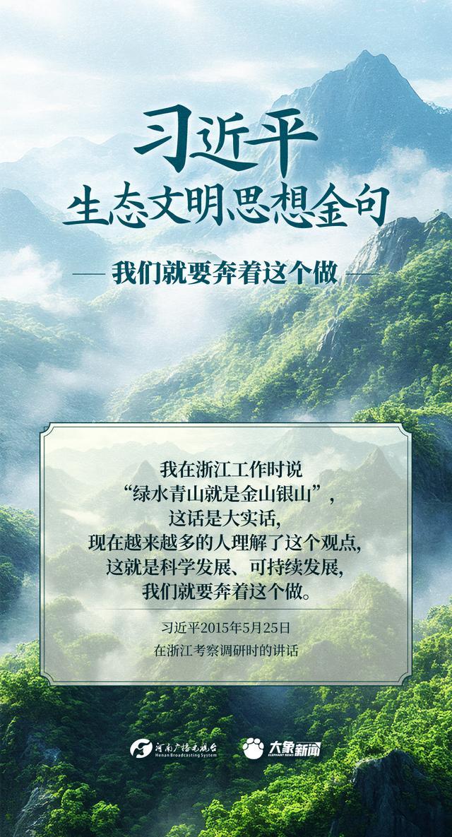 黨的十八大以來,習(xí)近平總書記把生態(tài)文明建設(shè)擺在治國理政突出位置,大力推動生態(tài)文明理論創(chuàng)新、實(shí)踐創(chuàng)新、制度創(chuàng)新,創(chuàng)造性提出一系列新理念新思想新戰(zhàn)略,形成了習(xí)近平生態(tài)文明思想,對生態(tài)文明建設(shè)的時代之問、世界之問、人民之問作出的科學(xué)解答。大象新聞推出《習(xí)近平生態(tài)文明思想金句》系列策劃,今天推出《我們就要奔著這個做》。