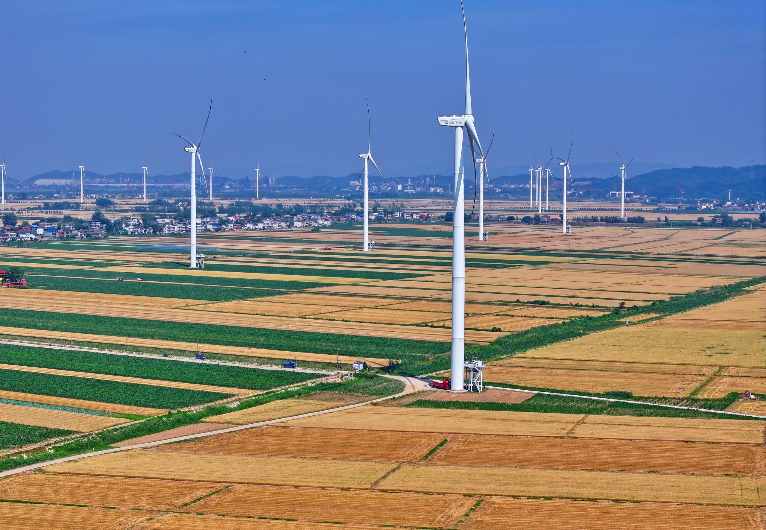 江西九江長江沿岸的風(fēng)力發(fā)電機