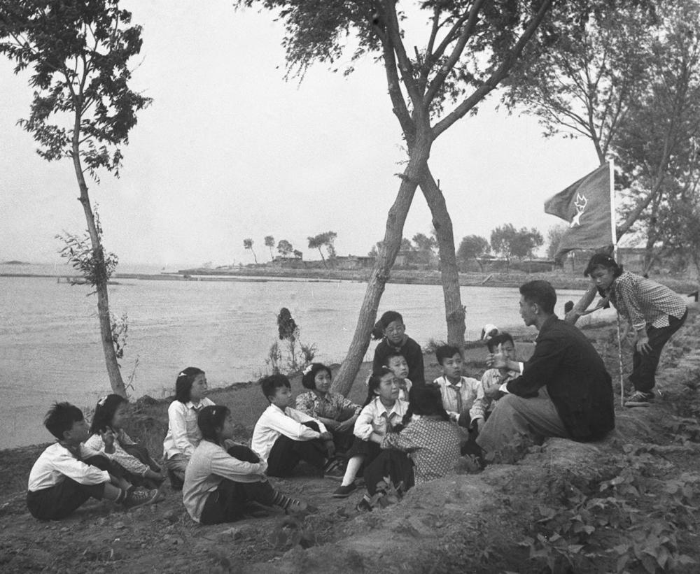 1955年,在河北白洋淀,新安小學(xué)的少先隊員們聽曾擔任過抗戰(zhàn)時期兒童團團長的陳殿元講抗戰(zhàn)故事。