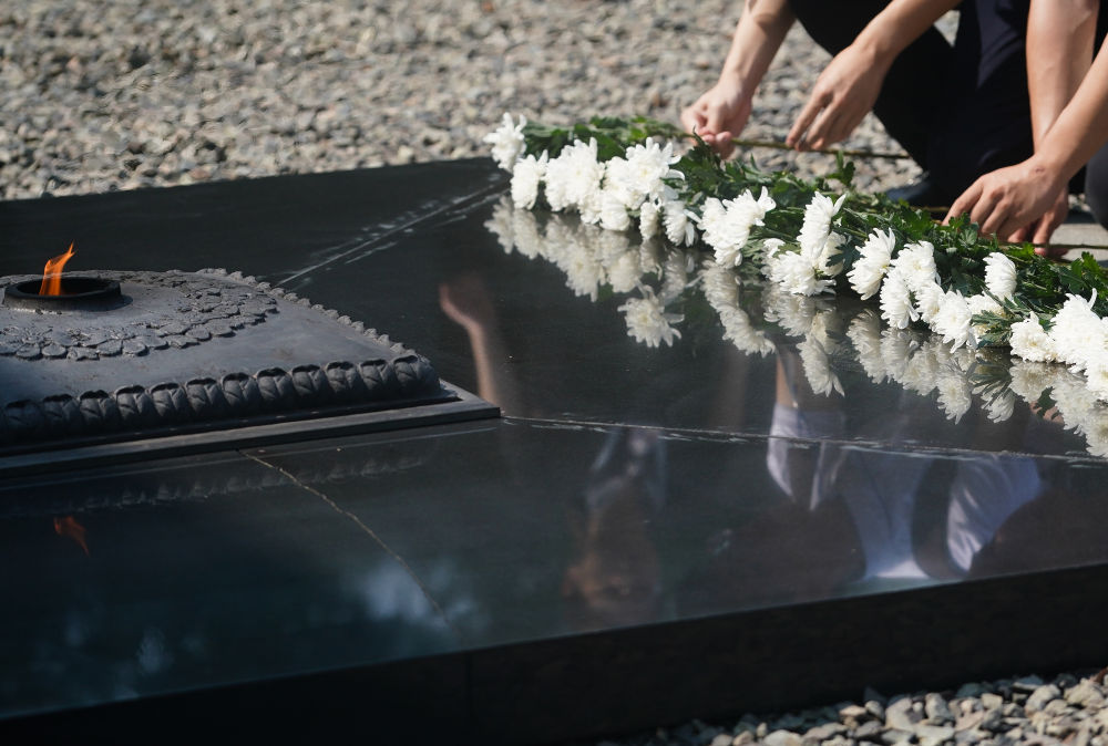 2019年8月15日,人們在侵華日軍南京大屠殺遇難同胞紀念館悼念遇難者。