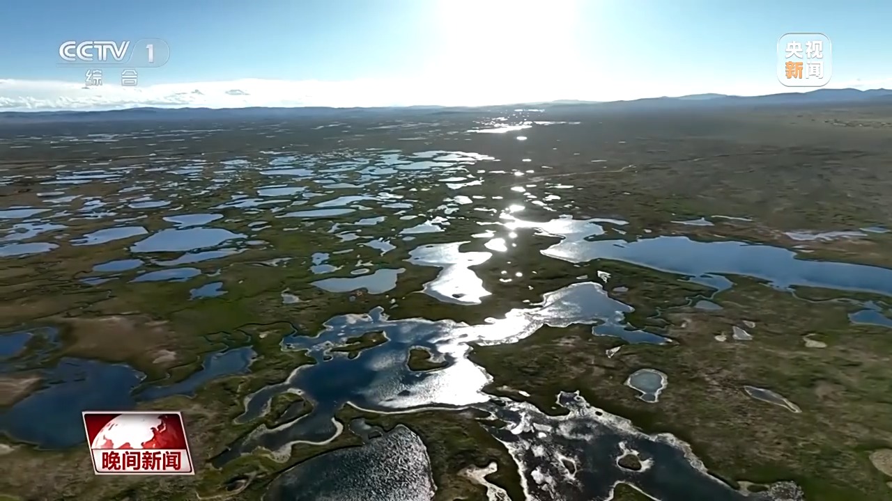 從高空俯瞰,無(wú)數(shù)湖泊沼澤,在陽(yáng)光的照耀下,星星點(diǎn)點(diǎn)、光彩奪目,如同綻放的花朵,點(diǎn)綴在高原之上。
