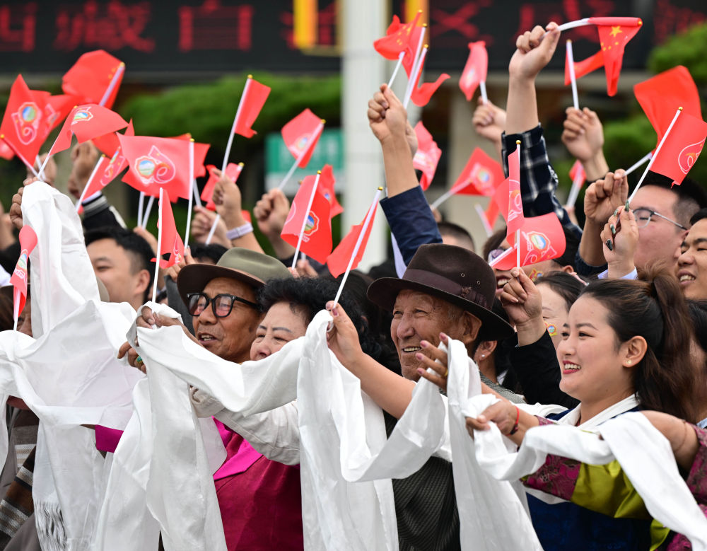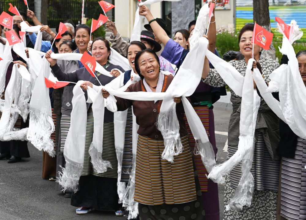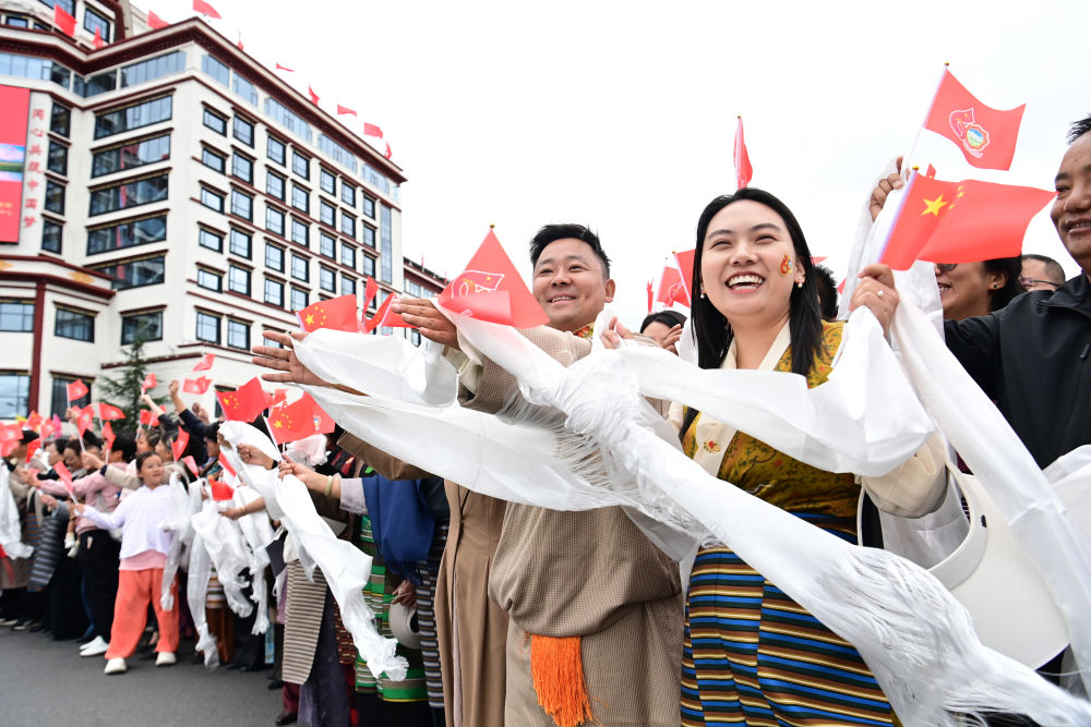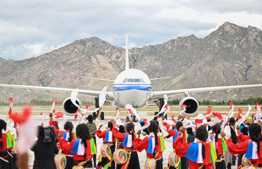 中共中央總書記、國家主席、中央軍委主席習近平率中央代表團20日中午乘專機抵達拉薩,出席西藏自治區(qū)成立60周年慶?;顒?。習近平等在機場和拉薩市區(qū)受到西藏各族群眾的熱烈歡迎。