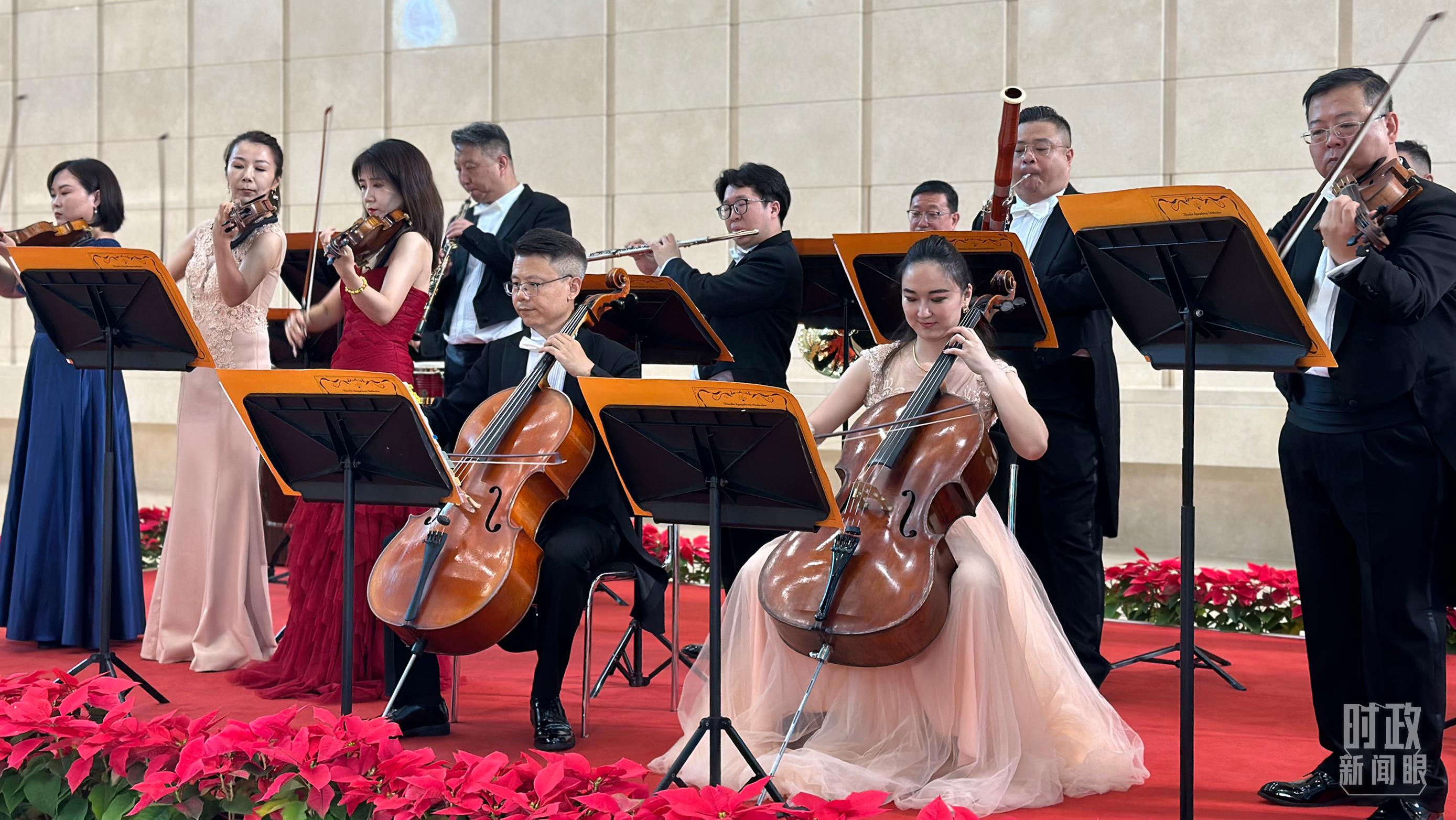 天津交響樂團(tuán)演奏與會(huì)各國知名樂曲。(總臺(tái)央視記者盧心雨拍攝)