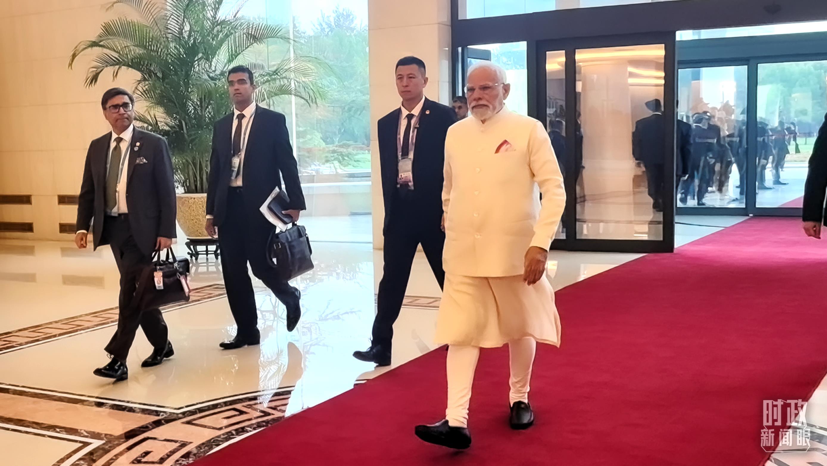 印度總理莫迪步入會(huì)見廳。(總臺(tái)央視記者范凱拍攝)