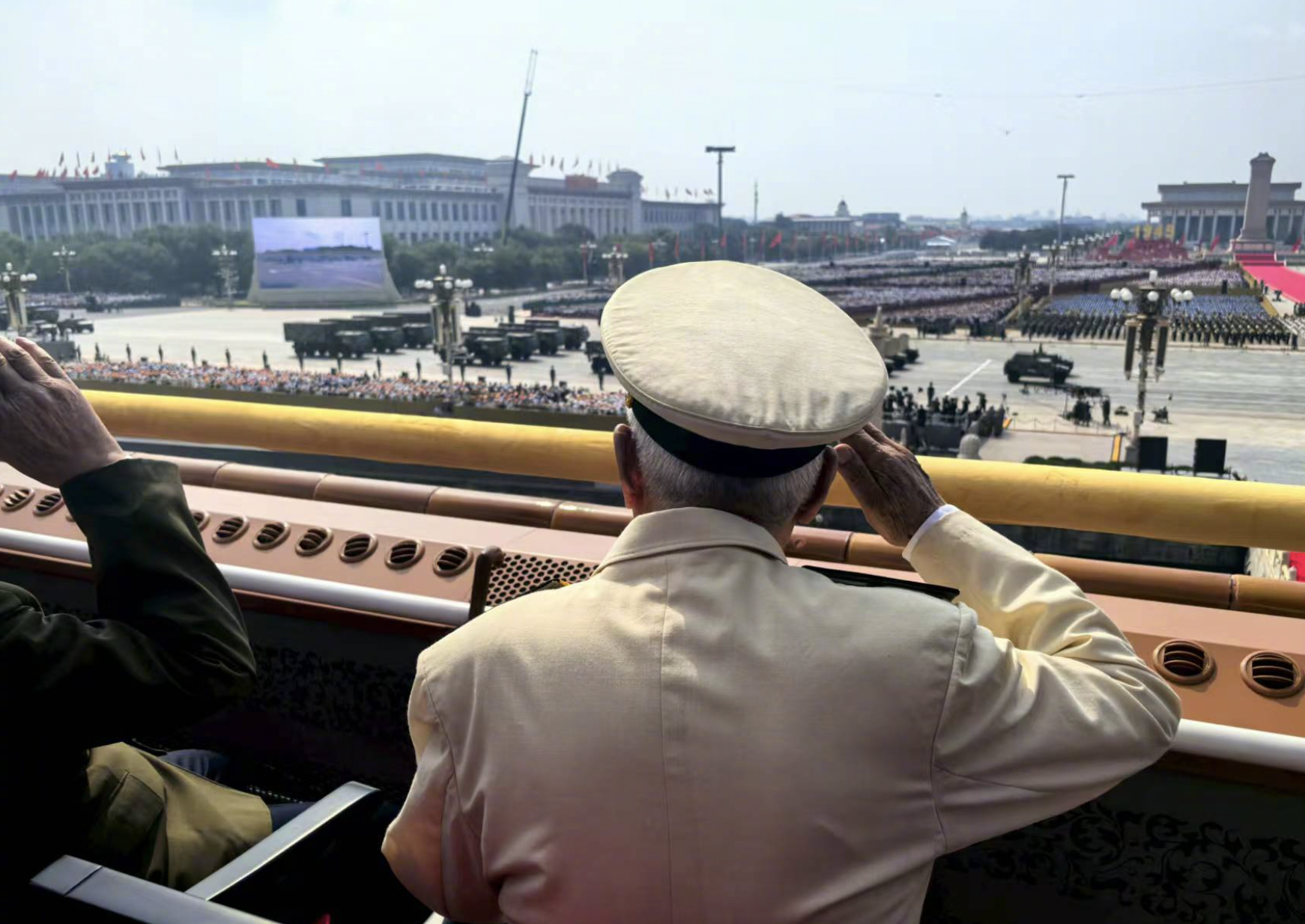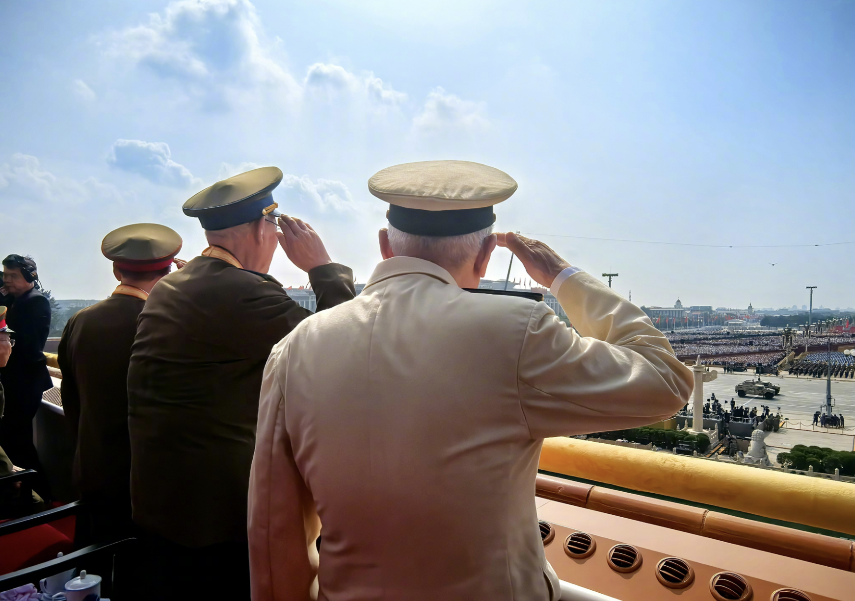 天安門(mén)城樓上,參加過(guò)抗戰(zhàn)的老戰(zhàn)士
