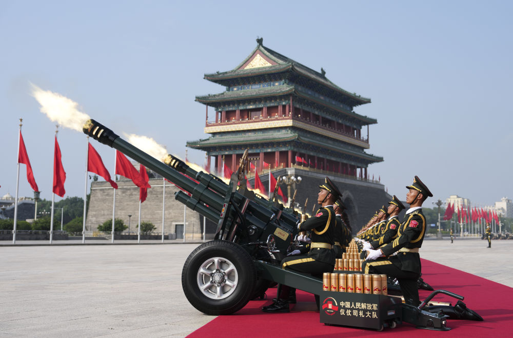 2025年9月3日,紀(jì)念中國(guó)人民抗日戰(zhàn)爭(zhēng)暨世界反法西斯戰(zhàn)爭(zhēng)勝利80周年大會(huì)在北京隆重舉行。這是禮炮在天安門(mén)廣場(chǎng)鳴響。